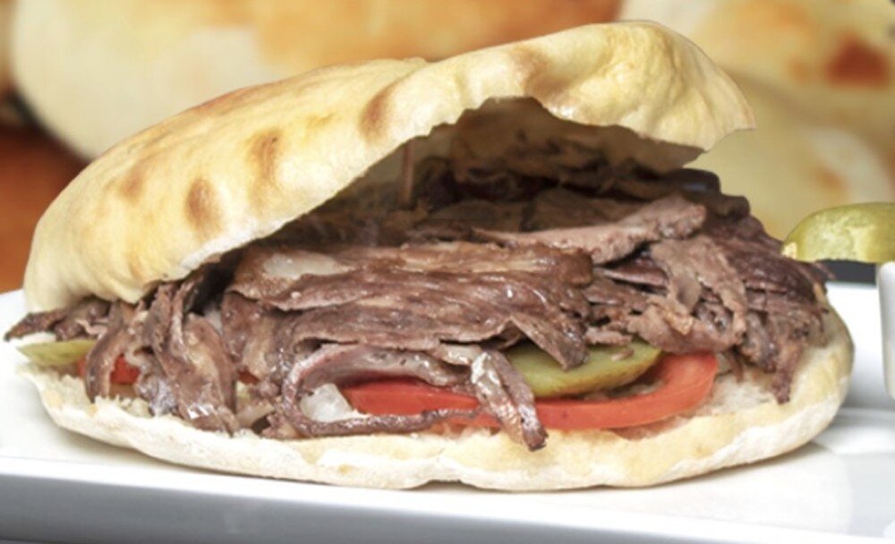 (доступен к заказу вторник и четверг)Лаваш/булочка, баранина, сол. огурец, помидор, лук репчатый, соус